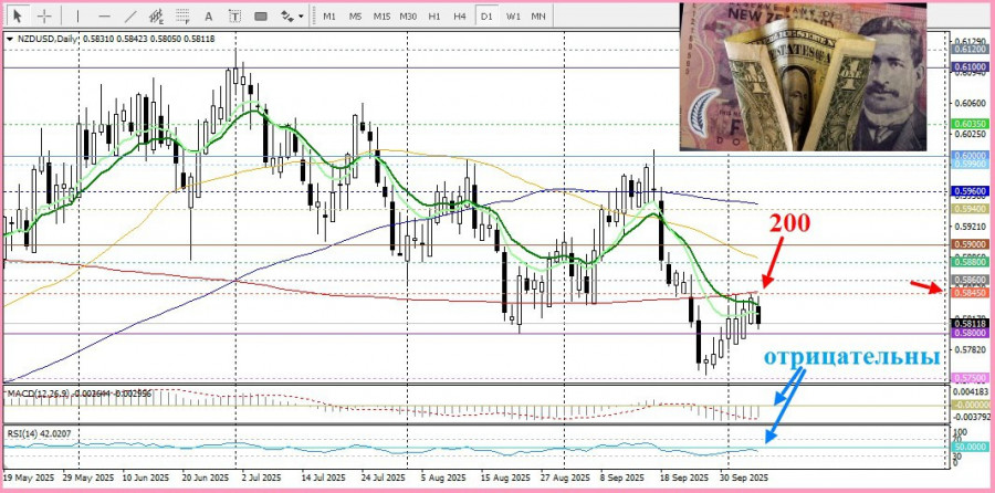 А с технической точки зрения осцилляторы на дневном графике отрицательны, тем не менее пара NZD/USD пока держится выше круглого уровня 0,5800, что говорит а её возможности сопротивляться.