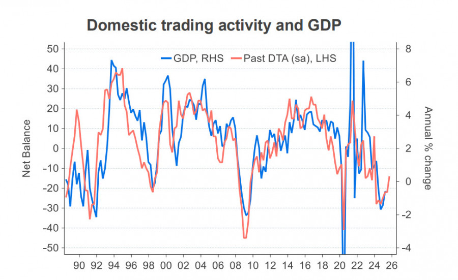 Внутренняя торговая активность немного выросла, что указывает на восстановление экономики, но осталась отрицательной, и с учетом высокой корреляции с ВВП есть риск того, что в 3 квартале выбраться из зоны рецессии не удалось, этот риск для РБНЗ наряду с инфляционным является на текущий момент наиболее значимым.