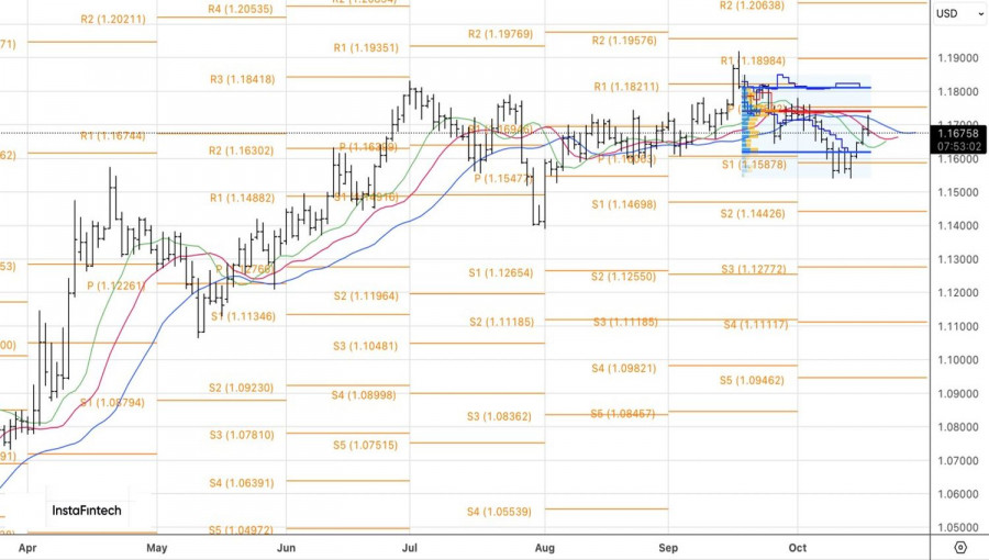 Технически на дневном графике EUR/USD может быть сформирован пин-бар с длинной верхней тенью. Прорыв его минимума на 1,1655 – повод для продаж. Впрочем, увлекаться шортами не стоит. Отбой от нижней границы диапазона справедливой стоимости 1,1610 или пин-бара на 1,1585 даст основания для переворота и возвращения к лонгам.