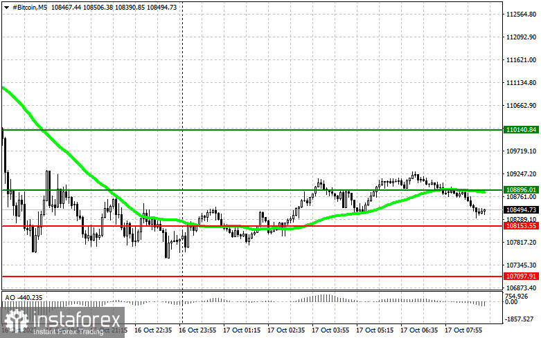 منظر نامہ 2: میں زیریں حد سے $108,100 پر بٹ کوائن خریدنے پر بھی غور کروں گا، بشرطیکہ اس سطح سے نیچے بریک آؤٹ پر مارکیٹ میں کوئی مندی کا ردعمل نہ ہو۔ اہداف $108,800 اور $110,100 ہوں گے۔