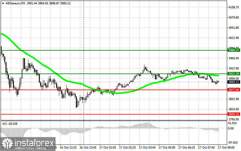 منظر نامہ 1: میں ایتھریم کو $3,877 کے قریب ایک انٹری پوائنٹ پر فروخت کروں گا، جس کا مقصد $3,809 تک گرنا ہے۔ $3,809 پر، میں مختصر پوزیشنوں سے باہر نکلوں گا اور ریباؤنڈ پر خریدنے پر غور کروں گا۔ فروخت کرنے سے پہلے، تصدیق کریں کہ 50 دن کی موونگ ایوریج موجودہ قیمت سے زیادہ ہے اور Awesome Oscillator منفی زون میں ہے۔