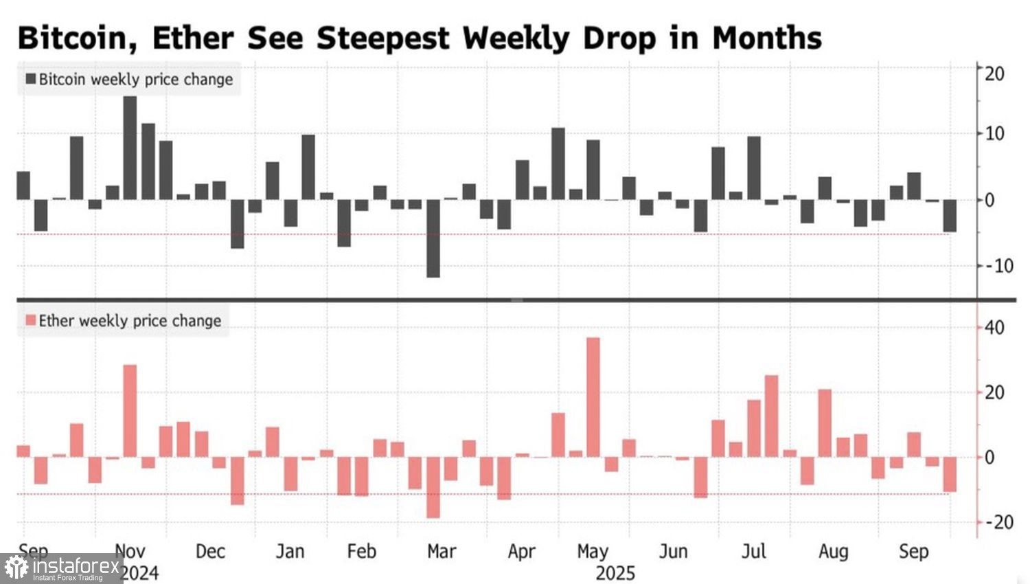Недельная динамика биткойна и эфира