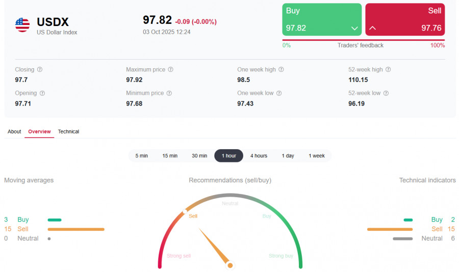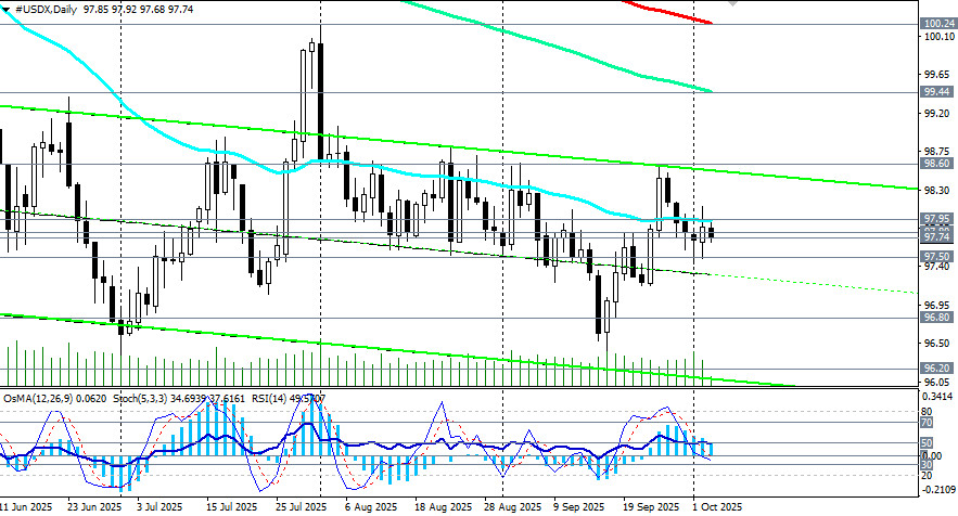 Ввиду этого, с технической точки зрения, возможен как рывок вверх, так и возобновление снижения, не исключая также последующий возврат к выделенной нами линии баланса и отметке 97.74 (подробнее см. в Индекс доллара USDX: сценарии динамики на 03.10.2025).