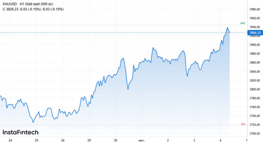 Начало недели стало триумфальным для любителей драгметаллов: в понедельник утром котировки золота подскочили на 1,2% и достигли $3 932,02 за унцию – абсолютный рекорд и, похоже, лишь промежуточный рубеж на пути к заветным $4 000.