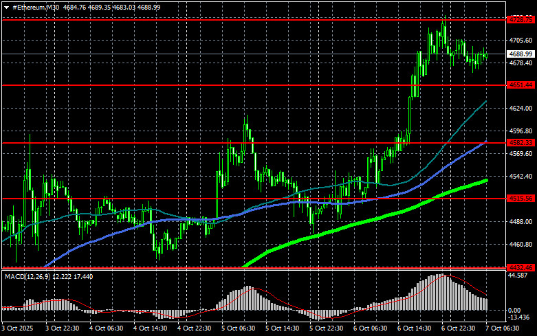 Что касается технической картины Ethereum, то очевидное закрепление выше уровня в $4616 открывает прямую дорогу на $4697. Самой дальней целью выступит максимум в районе $4784, преодоление которого будет означать укрепление бычьего рынка рост интереса покупателей. В случае падения эфира покупателей жду на уровне $4533. Возврат торгового инструмента под эту область может быстро свалить ETH в район $4432. Самой дальней целью будет область $4331.