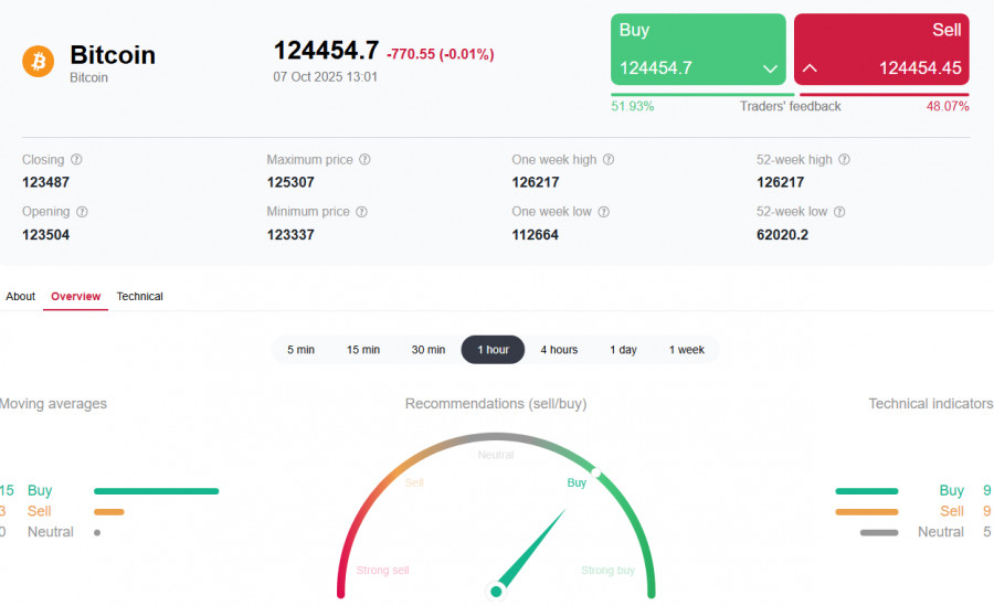 Так, первая криптовалюта Bitcoin достигла вчера нового рекордного максимума в цене вблизи отметки 126200.00 доллара.