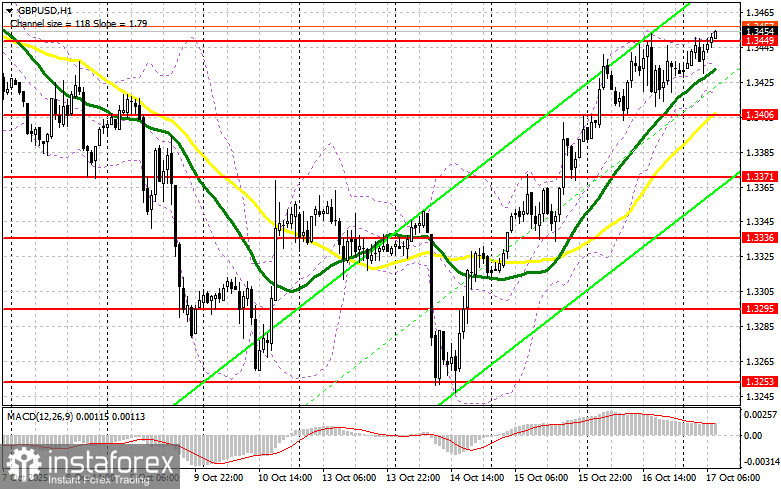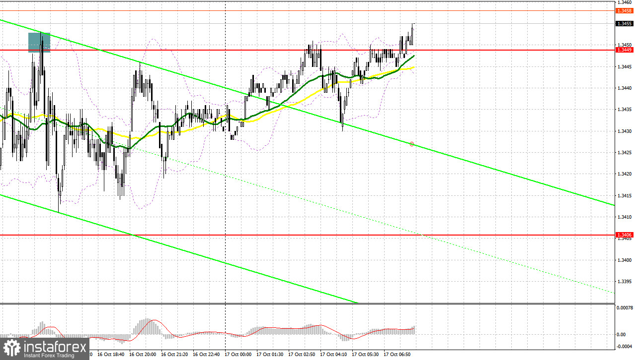 Вчера было образовано несколько точек входа в рынок. Давайте посмотрим на 5-минутный график и разберемся с тем, что там произошло. В своем утреннем прогнозе я обращал внимание на уровень 1.3400 и планировал от него принимать решения по входу в рынок. Снижение и формирование ложного пробоя в районе 1.3400 привели к хорошей точке входа на покупку фунта, что вылилось в рост пары на 40 пунктов. Во второй половине дня активные действия продавцов привели к формированию ложного пробоя в районе 1.3449, что вылилось в падение фунта более чем на 30 пунктов.