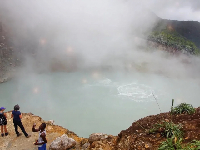 Кипящее озеро – один из самых странных водоемов мира. Оно спрятано в кратере вулкана Морн-Труа-Питон и напоминает гигантский котел с бурлящей водой. Серо-голубая поверхность постоянно вздымается пузырями, а температура по краям держится на уровне 80–90°C. Это объясняется интенсивной вулканической активностью: из глубин поднимаются раскаленные газы и нагревают воду до состояния вечного кипения.