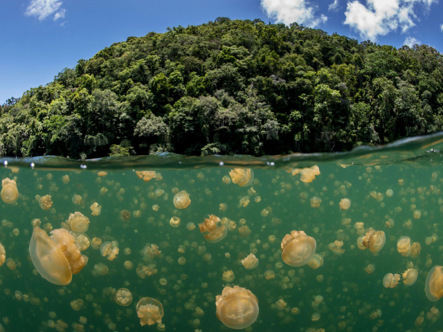 Это одно из самых необычных озер мира, где обитают миллионы золотых медуз. Оно образовалось около 12 тыс. лет назад, когда морская вода заполнила карстовую впадину и изолировалась от океана. Со временем хищники исчезли, и медузы утратили способность жалить. Сегодня озеро представляет собой редкий природный феномен, где можно плавать среди бесчисленных полупрозрачных существ, не опасаясь ожогов.