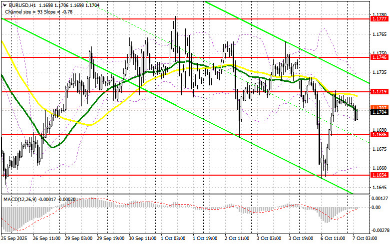 Сегодня в первой половине дня ожидаются достаточно интересные данные по странам еврозоны. Изменение объема заказов в промышленности в Германии и сальдо баланса внешней торговли Франции привлекут внимание трейдеров. Также необходимо послушать речь президента Бундесбанка Йоахима Нагеля. При небольшом возврате давления на евро первого проявления покупателей ожидаю в районе 1.1686. Лишь формирование там ложного пробоя будет точкой входа в рынок с целью роста к сопротивлению 1.1719, образованному по итогам вчерашнего дня. Прорыв и обратный тест этого диапазона станут подтверждением правильных действий на покупку евро в расчете на более крупный рост пары к 1.1749, что укажет на возврат покупателями инициативы. Самой дальней целью выступит область 1.1777, где буду фиксировать прибыль. При варианте снижения EUR/USD и отсутствия активности в районе 1.1686, давление на пару может вернуться. Продавцы наверняка сумеют дотянуться до более интересного уровня 1.1654. Лишь формирование там ложного пробоя будет подходящим условием на покупку евро. Открывать длинные позиции сразу на отскок будут от 1.1611 с целью восходящей коррекции в 30-35 пунктов внутри дня.