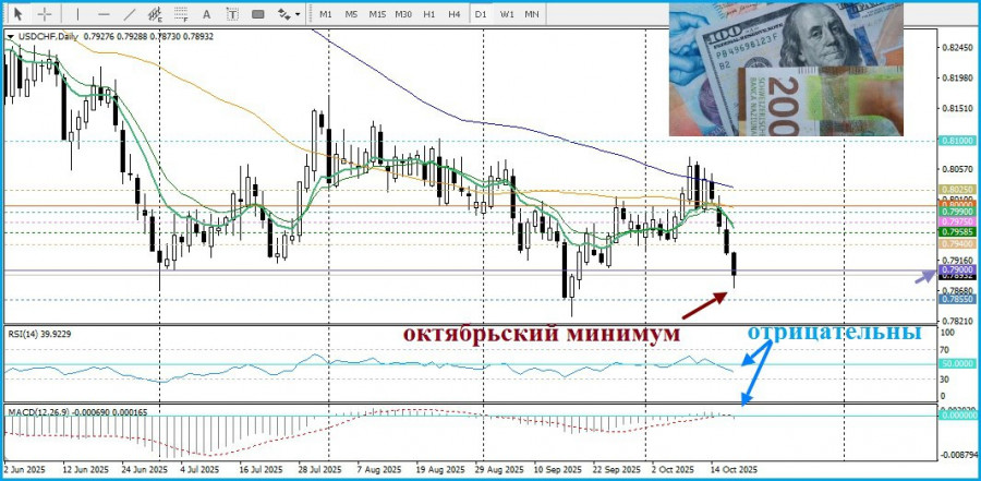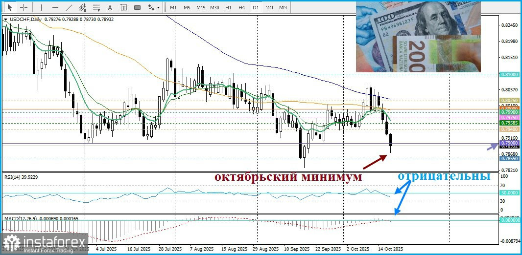 Эти факторы, а также усиление торговых противоречий между США и Китаем, оказывают давление на доллар и валютную пару USD/CHF. Напряженность между двумя крупными экономиками обострилась после того, как президент Трамп пригрозил повысить пошлины на китайские товары до 100%, в то время как Китай усилил ограничения на экспорт редкоземельных металлов. Кроме того, обе страны ранее объявили о введении взаимных тарифных сборов на порты, что повысило опасения о возможной полномасштабной торговой войне.