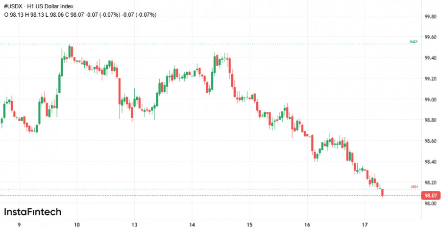Bu hafta dollar uchun og'ir bo'ldi. Dollar indeksi 0.7% ga tushdi — iyundan beri eng keskin haftalik pasayish. "Yashil" valyuta endi ketma-ket to'rt savdo sessiyasida pasayib kelmoqda — bu kabi likvid va odatda barqaror bozor uchun kam uchraydigan holat. Bu holatning o'ziyoq treyderlar va tahlilchilar e'tiborini tortdi.
